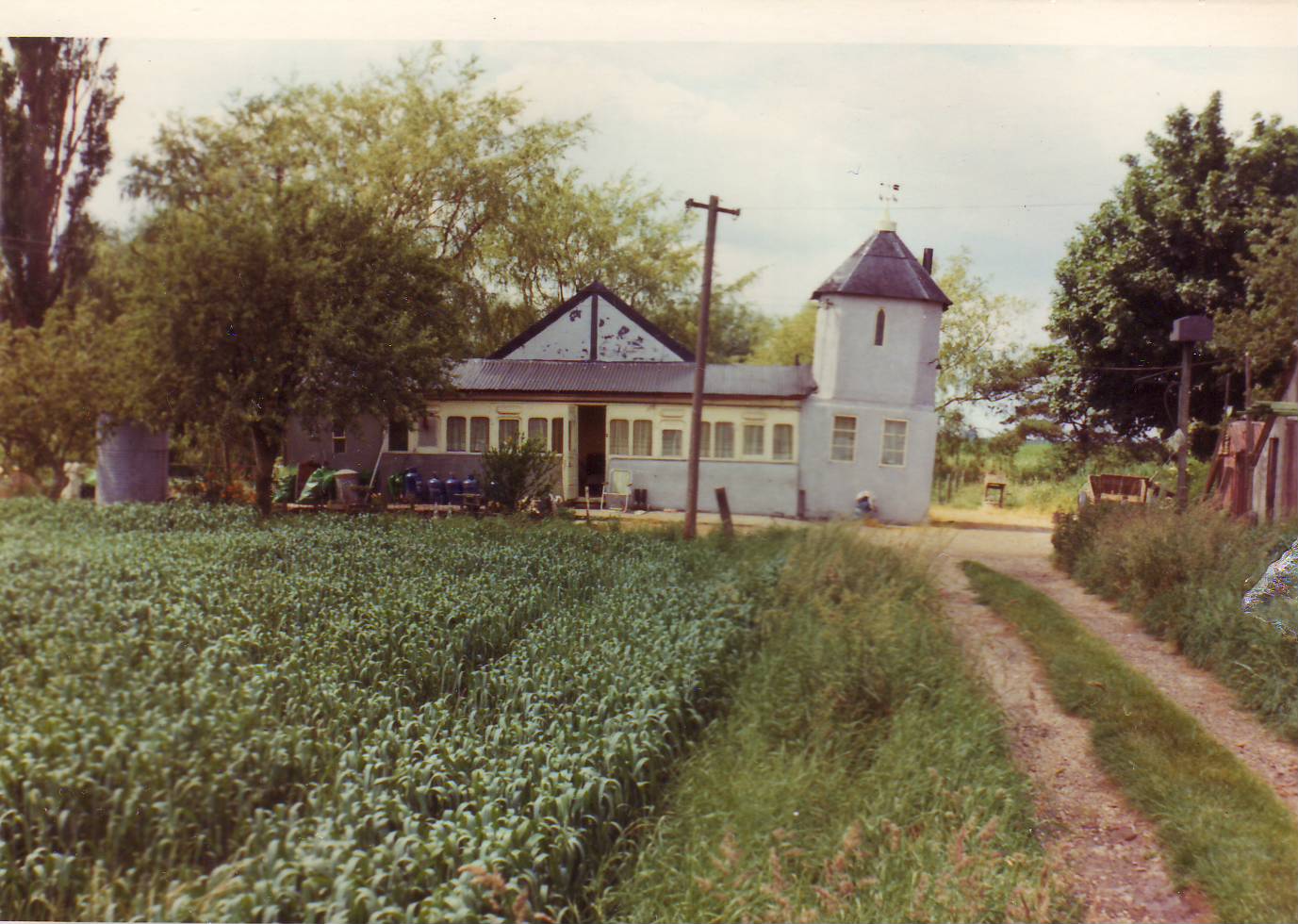 "I have attached a photo of the original house down at Colony which I took in the 70's. How that tower never fell down I shall never know, I believe it moved a bit every year. |